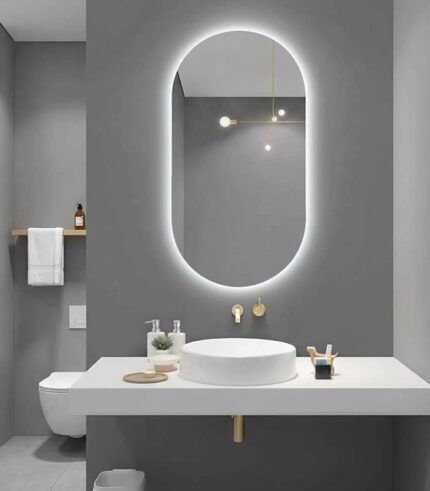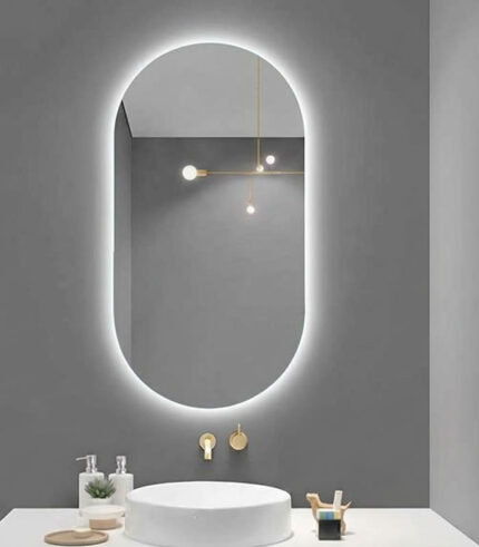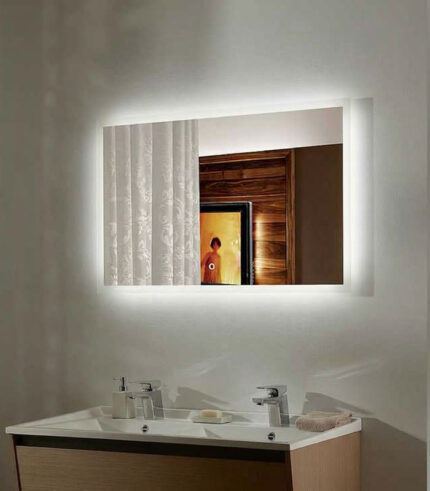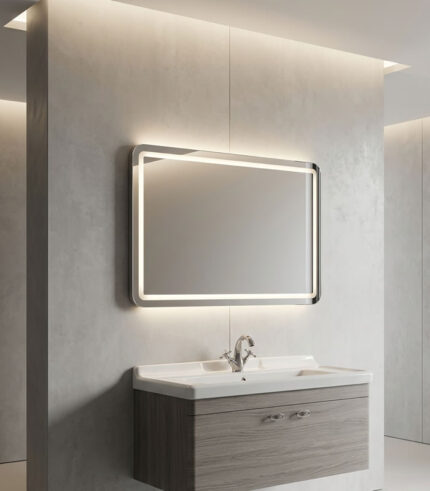 Este espejo rectangular incluye luz LED blanca y sensor táctil para encendido y apagado.