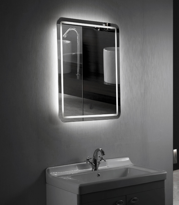 Espejo M101-6080 REVERSIBLE rectangular incluye luz LED blanca y sensor táctil para encendido y apagado.