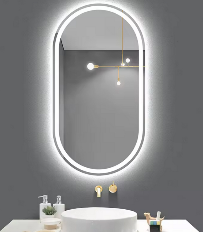 Espejo M100-5070 rectangular incluye luz LED blanca y sensor táctil para encendido y apagado, para colgar verticalmente.