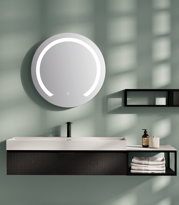 Espejo M103-80 rectangular incluye luz LED blanca y sensor táctil para encendido y apagado, colgado vertical.