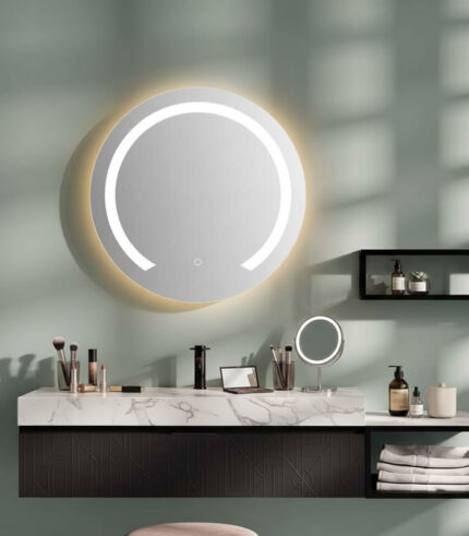 Espejo M106-5070 rectangular incluye luz LED blanca y sensor táctil para encendido y apagado, colgado vertical.