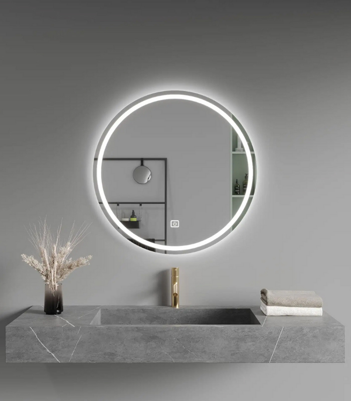 Espejo M108-60 Circular incluye luz LED blanca y sensor táctil para encendido y apagado.
